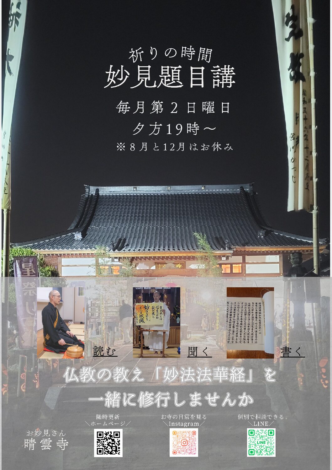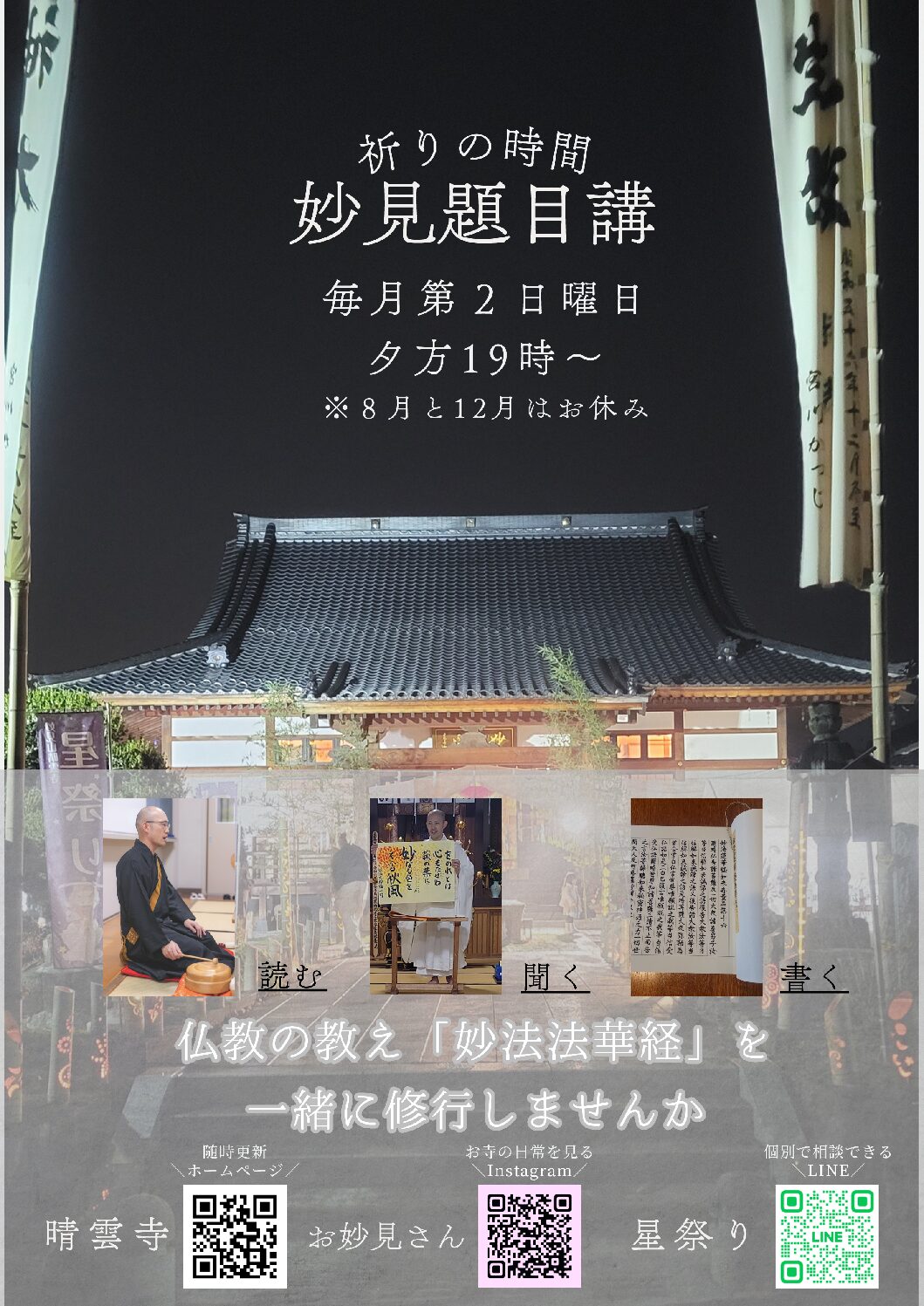 当山の守護神は開運北辰妙見大菩薩通称「お妙見さん」毎年冬至の深夜零時に”星祭り”が行われお妙見さんにお会いできます